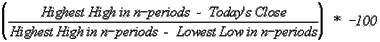 The formula used to calculate Williams' %R is similar to the Stochastic Oscillator: