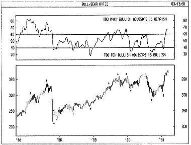High readings of the Bull/Bear Ratio are bearish (there are too many bulls) and low