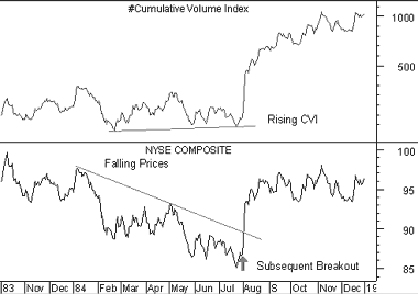 The Cumulative Volume Index ("CVI") is a market momentum indicator that shows whether money