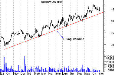 rising trend can be thought of as a rising support level--the bulls are in control and are