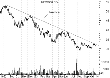 can penetrate rising and falling trendlines. Figure 21 shows the penetration of Merck's