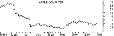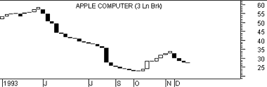 The following illustration shows a Three Line Break and a bar chart of Apple Computer.
