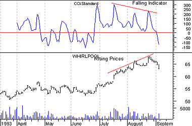 (Commodity Channel Index). [See page .] Whirlpool's prices were making new highs while