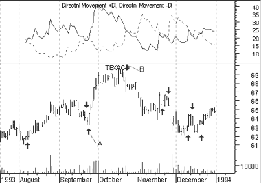 arrows when the +DI rose above the -DI and "sell" arrows when the +DI fell below the -DI.