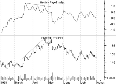 The following chart shows the British Pound and the Herrick Payoff Index.