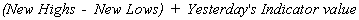The New Highs-Lows Cumulative indicator is simply a cumulative total of the number of