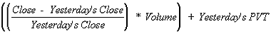 The PVT is calculated by multiplying the day's volume by the percent that the security's