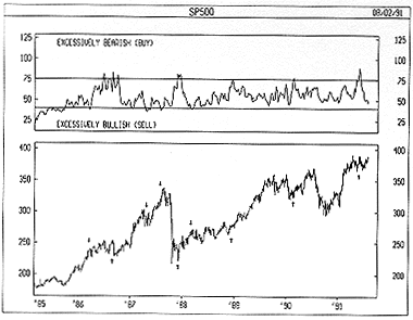 excessively pessimistic (greater than 70) and "sell" arrows when they were excessively