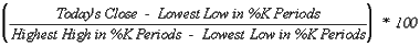 The formula for %K is: